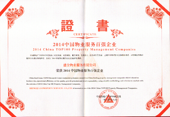 6月18日,2014年中国物业服务百强研究成果发布会暨第七届中国物业服务百强企业家峰会在北京钓鱼台大酒店举行。会上发布了“2014中国物业服务百强企业”荣誉榜单,盛全物业荣列其中。
