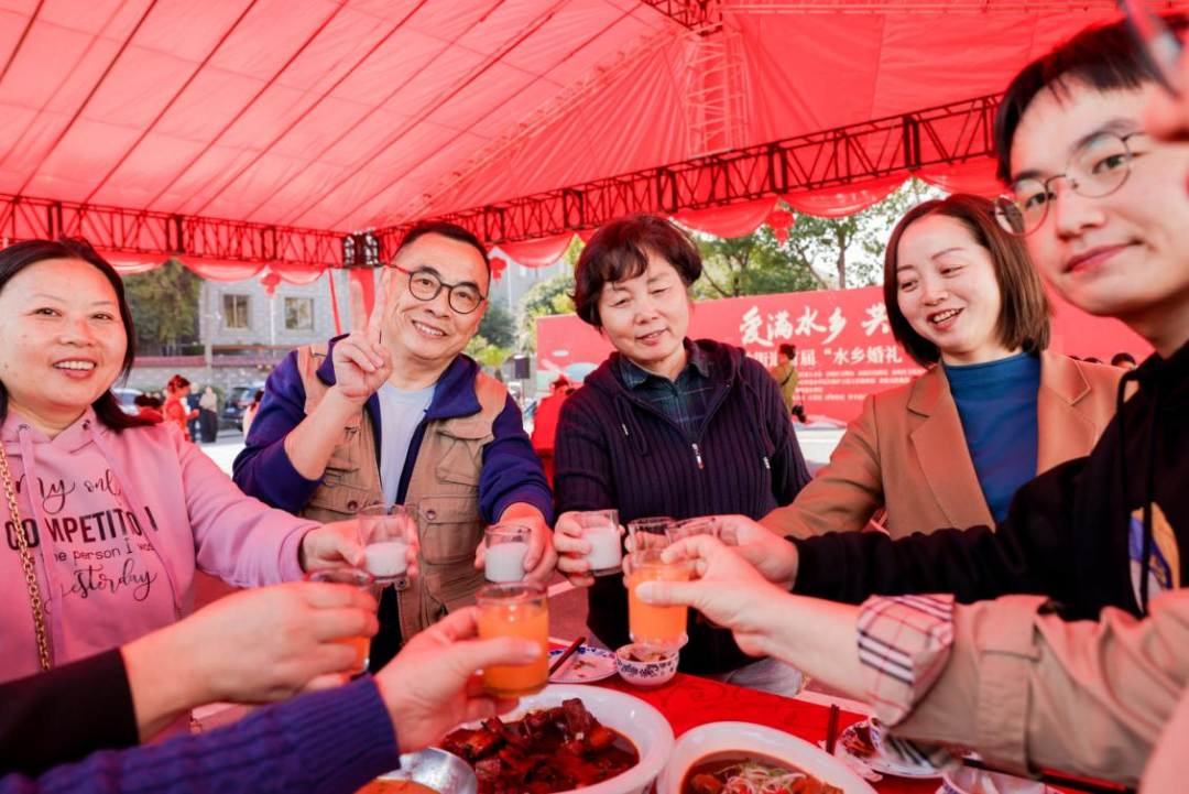 11月5日,唐域商业联合属地街道于闲林埠老街举办“爱满水乡 共富林下”为主题的首届“水乡婚礼”民俗文化节。