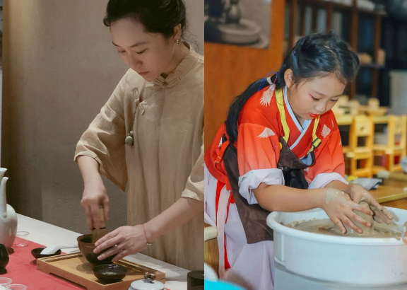 结合自身优势和商户资源,先后推出了宋代陶艺手作体验、余杭纸伞制作体验、宋代点茶体验、宋代传统服饰体验、团扇制作体验、宋韵风筝制作体验等宋式特色文旅项目,为来访游客提供宋韵文化知识普及、宋韵体验项目指导、游客现场手作体验、后期成品送达等服务。